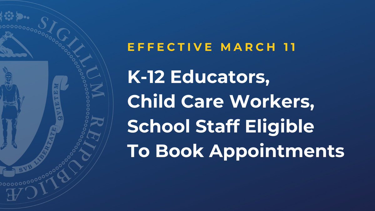Starting March 11, K-12 educators, child care workers and K-12 school staff are eligible to schedule appointments for the