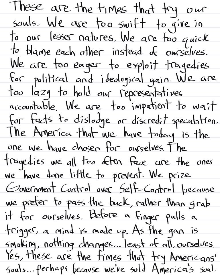 My Fellow Americans: Stop, breathe, think, and look inside. Don't make this about you, or your agenda.