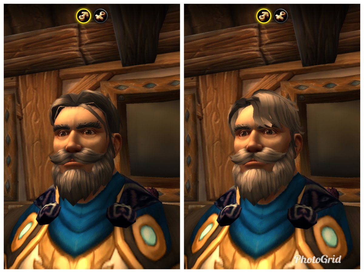 Grey hair gets whiter upon choosing a new hair style. Both of the pictures below were supposed to have the same hair color. Please fix this, @WarcraftDevs, it’s feeling kind of Beta right now. #Warcraftpic.twitter.com/yL8Lfksry5