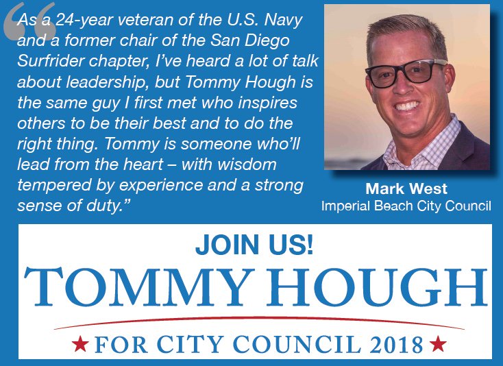 @SDEnviroDems I need your vote tomorrow as the club endorses in the#D6 race. And thanks to I.B. city councilmember@Mark4IBCityCoun as one of our#EnvironmentalistsforTommy supporters#VoteTommy2018: http://bit.ly/2BNL3MN pic.twitter.com/R1rAkTlnpn