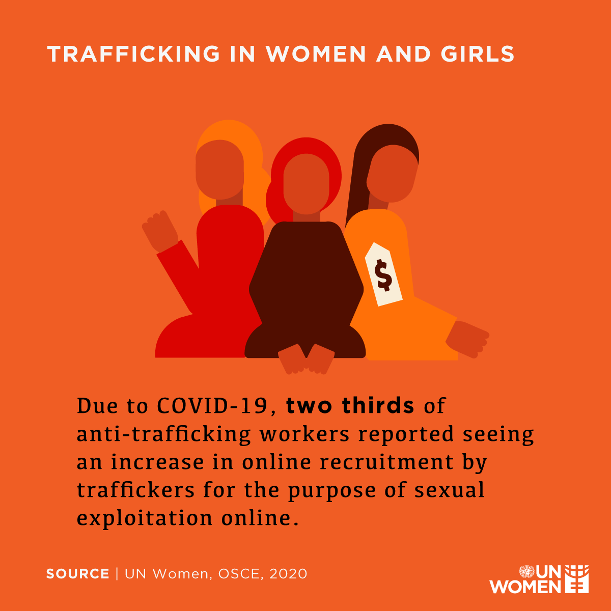 Due to Covid-19, two-thirds of anti trafficking workers reported seeing an increase in online recruitment by traffickers for the purpose of sexual exploitation online.