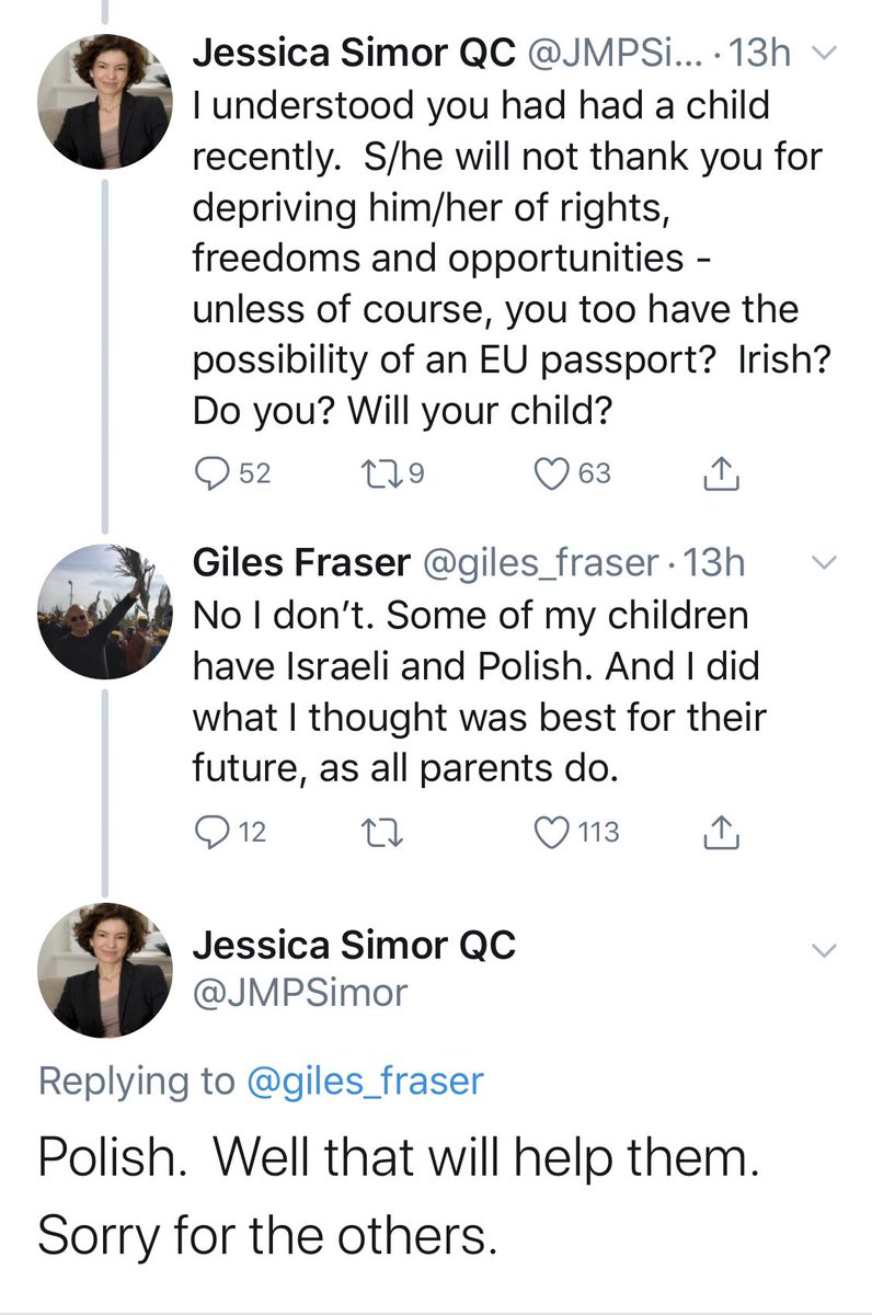 @thebarcouncil Is it appropriate and within the rules of the Bar’s code of conduct for QCs like@JMPSimor to post tweets criticising a new father’s parenting simply because he doesn’t share her political views? What action do you propose to take about this?pic.twitter.com/v0fM2UQsUI