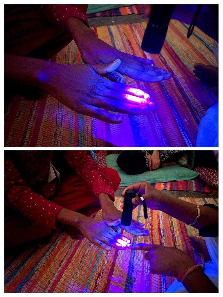 Solar trainees were very keen to check if all the germs are killed after they washed their hands properly for at least 30 secs