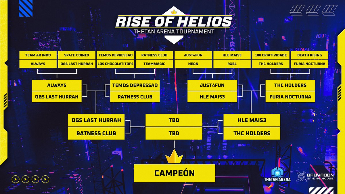 Así lucen las Semifinales del torneo #RiseOfHelios by@ThetanArena y patrocinado por@BabymoonScholar