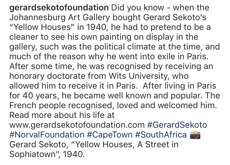 “When the Johannesburg Art Gallery bought Gerard Sekoto’s “Yellow Houses” in 1940, he had to pretend to be a cleaner to see his own painting on display...”pic.twitter.com/Wwg4J3NTSv