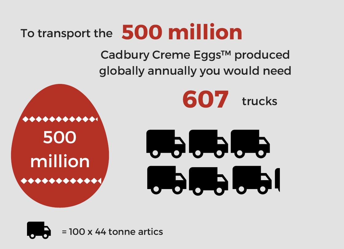 #cremeeggs produced annually you would need 607 x 44 tonne artics? See more#Easter logistics facts in our infographic: https://goo.gl/oC8Yg3 pic.twitter.com/y596nsZ9t8