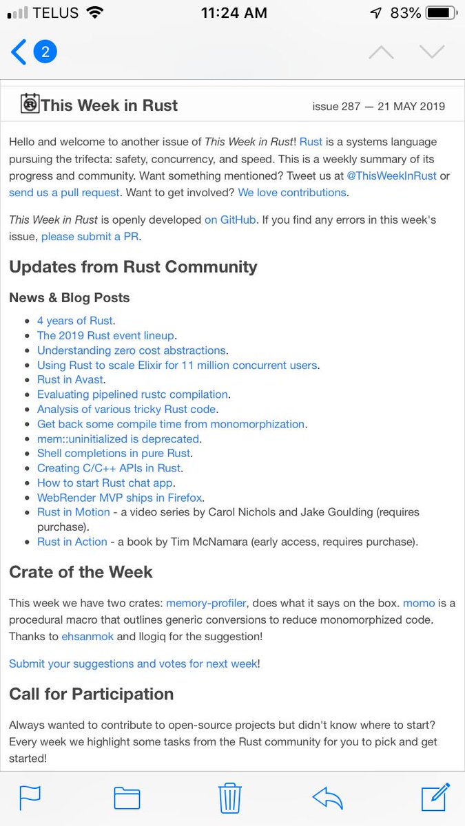 @ThisWeekInRust Are there any quick wins to make the newsletter better on mobile devices? The email is pretty brutal to read on my phone.