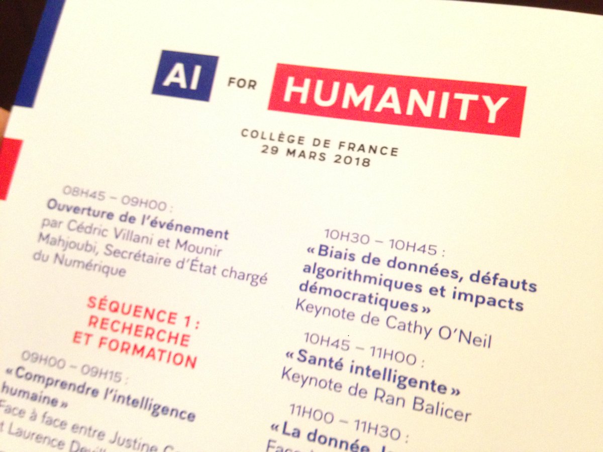 #aiforhumanity today in Paris with a crazy lineup, half a day of debats between@drfeifei@ylecun@demishassabis Berkeley's Stuart Russell@noricoco@mathbabedotorg@sama@VillaniCedricpic.twitter.com/2fwPIavO8X