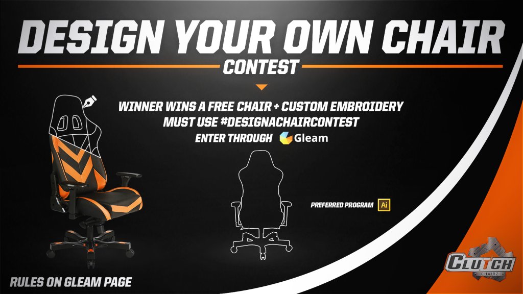 Design-A-Clutch-Chair Contest 2018 Link to .ai files for chairs --> http://bit.ly/DESIGNCC Link to entry (must follow steps) --> http://bit.ly/CLUTCHDESIGN 2 Winners Selected on June 5th! All designs must be submitted on Instagram or Twitter with the