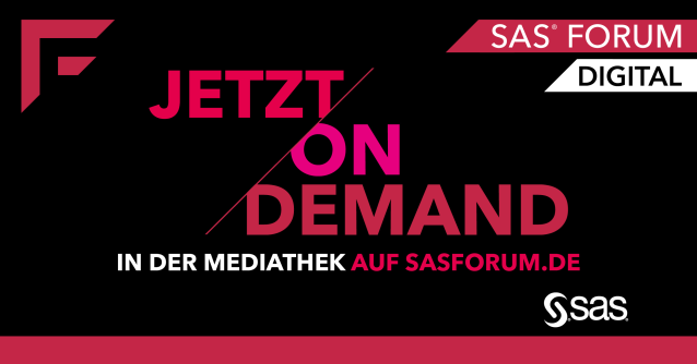 Die besten Beiträge vom SAS Forum 2020 gibt es jetzt on-demand in der SAS Forum Mediathek: 50+ Use Cases, Präsentationen und Keynotes von führenden Anwendern und die Expo Area mit wertvollem Praxis-Knowhow und Tipps von Experten.