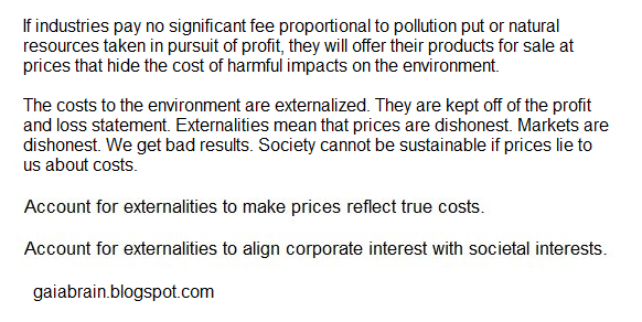 Prices are lying to us (not showing true costs, due 2 externalities) so we do the wrong thing. When industries mess up the air & water or deplete natural resources, they should pay fees (high enough to bring impacts of various kinds into line w/what most ppl think is OK). Share $pic.twitter.com/JjvEFEKAn4