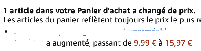 Propre l'augmentation de 60% du prix, entre l'ajout et la confirmation.