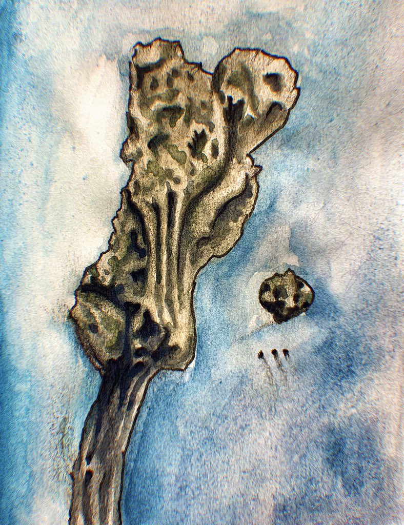 #void#choral rose high into the blistering sky. This massive rock would#hover there, pronounced in its defiance for over a millennia, prompting the birth hundreds of#religions. (#watercolor#ink#painting#art#myart#pen#trash#gothic#artist#follow)pic.twitter.com/cf4buMahqB