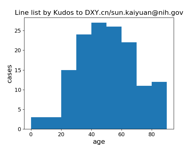 @SunKaiyuan's list of 150 odd cases and made a histogram of the ages (suggestion by@firefoxx66). Does anyone have any thoughts on the paucity of pediatric cases or the peak around 40-50?pic.twitter.com/nILHLcnSWH