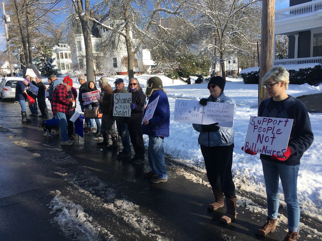Protesters voice anger over tax bill outside Susan Collins’ Bangor home http://bit.ly/2kky6PE  #mepoliticspic.twitter.com/GbXGZ5OHaM