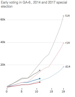 Early voting in GA-6 running near 2014 pace in Fulton County, but falling behind districtwide (few sites outside Fulton Co.)pic.twitter.com/mp40hawGQe