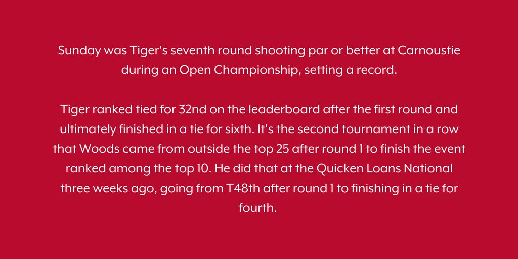 “At the beginning of the year, if they’d said you’re playing The Open Championship, I would have said I’d be very lucky to do that,” said Woods, who not only played but contended and finished tied for 6th. - TGRhttp://news.tigerwoods.com/woods-finishes-exciting-final-round-at-the-open-tied-for-6th/ …