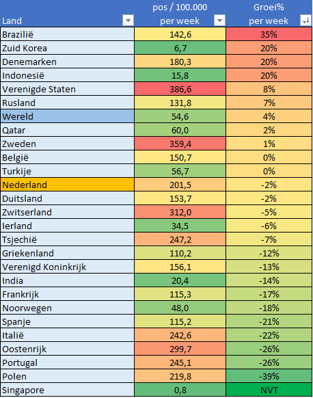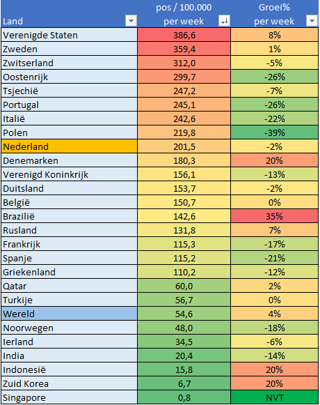 BTW: Oost-Europa zou nu hoger staan, zoals Bulgarije/Slovenië/Montenegro/Bosnië/Masedonië/Litauwen/Roemenië etc. Maart/April heel weinig in Oost-Europa, afgelopen tijd veel, zelfs geen uitzonderingland. Ijsland/Noorwegen/Finland/Monaco zijn nu nog de relatieve uitzonderingen.