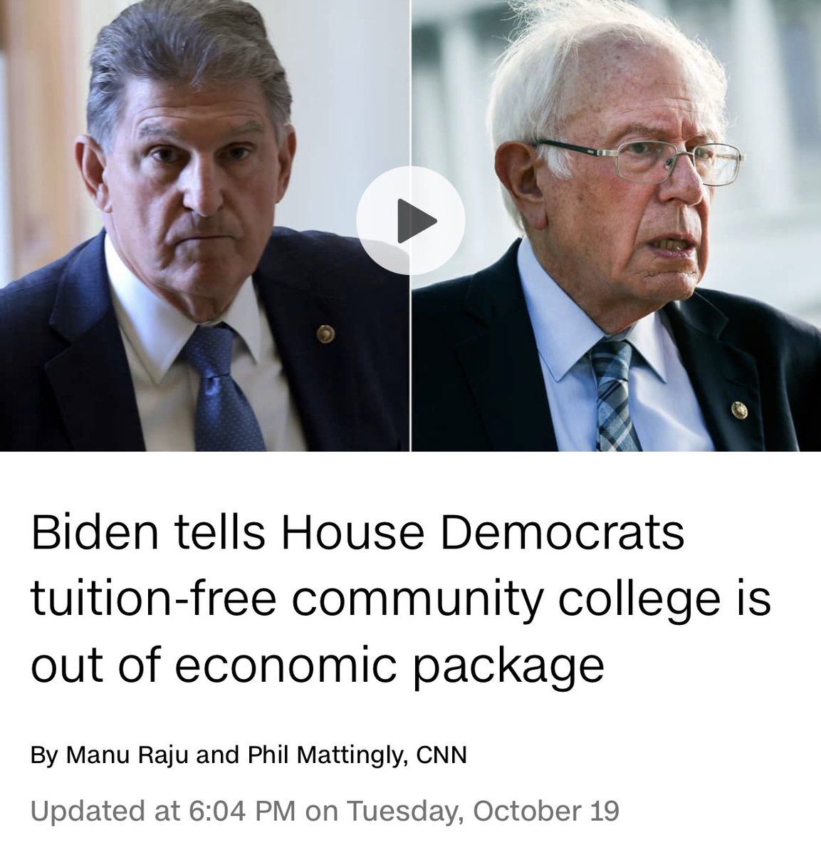 Classic Democrats: Take an already inadequate bill: gut all the popular provisions like climate, free college, Medicare negotiations etc. Then means test the hell out of what little is left for poor & working ppl but conveniently don’t tax the rich or means test them. Then…https://twitter.com/mkraju/status/1450577070032134147 …