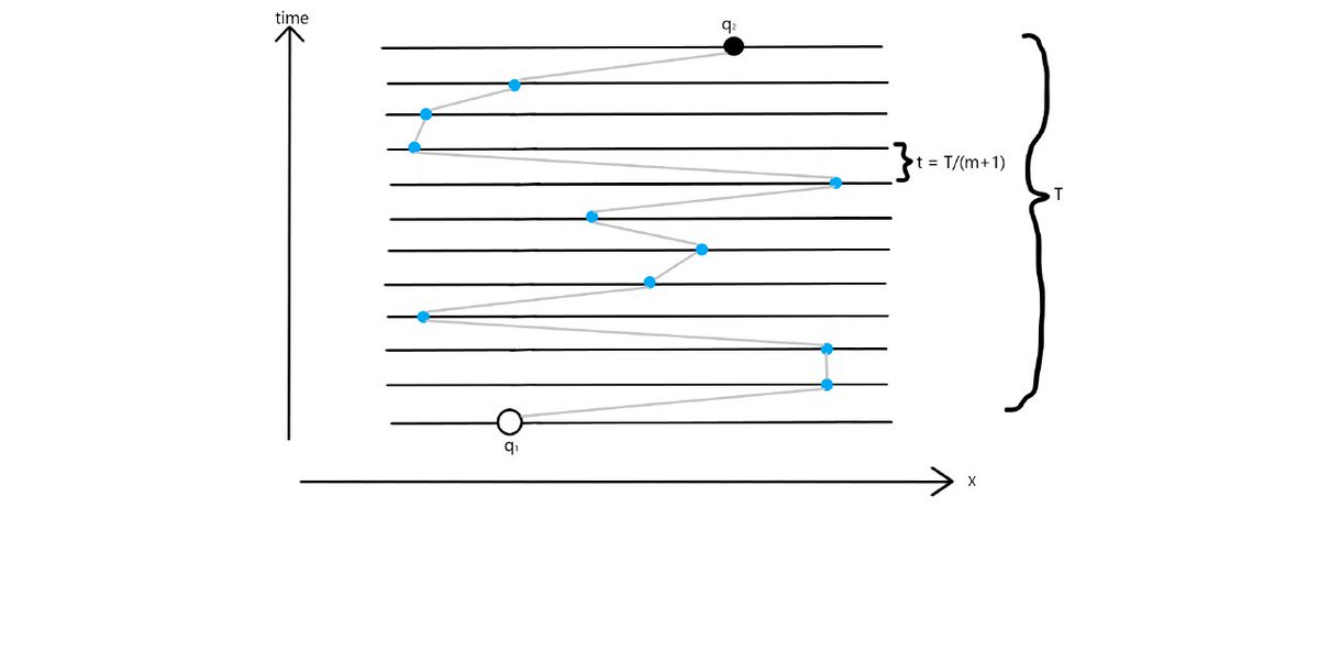 13/25 Now that we destroyed the barrier, it is nothing more than a pretty arbitrary slice through space and we said "Look, somewhere on your path, you have to have been somewhere in this slice." We could do the exact same for a time slice: "At time T/2 you have to be somewhere".pic.twitter.com/sP3SbUAwqB