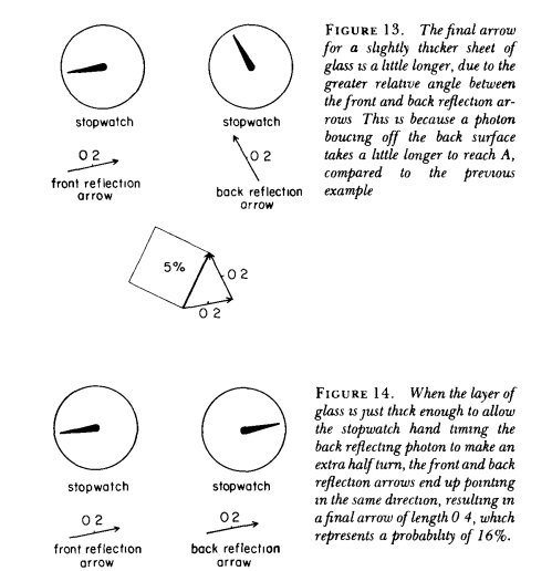 23/25 Paraphrasing [3], Feynman said we should think of each path having a little stopwatch. It ticks faster if the path goes quickly and slower if there's a barrier. Then we put all the final hands head to tail (pic) and the size of the resulting arrow is the probability densitypic.twitter.com/nprk9WwyTX