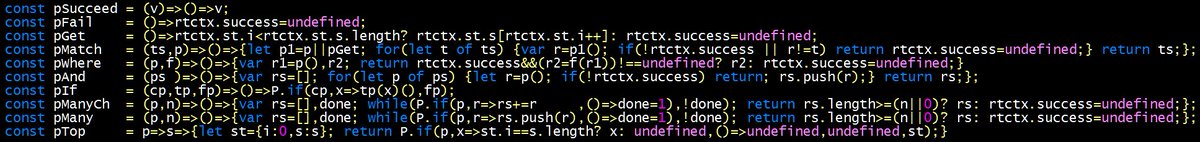 Lazy asynchronous backtracking parser combinators in JavaScript (uncommented 4K monitor edition):pic.twitter.com/hgFUMk5vL7
