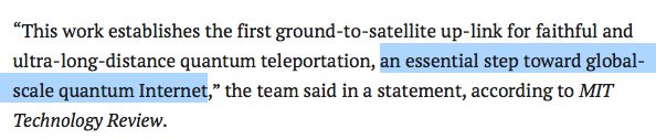 Do you mean the latency makes it useless? My understanding is we took a major step towards quantum networking here. http://time.com/4854718/quantum-entanglement-teleport-space/ …
