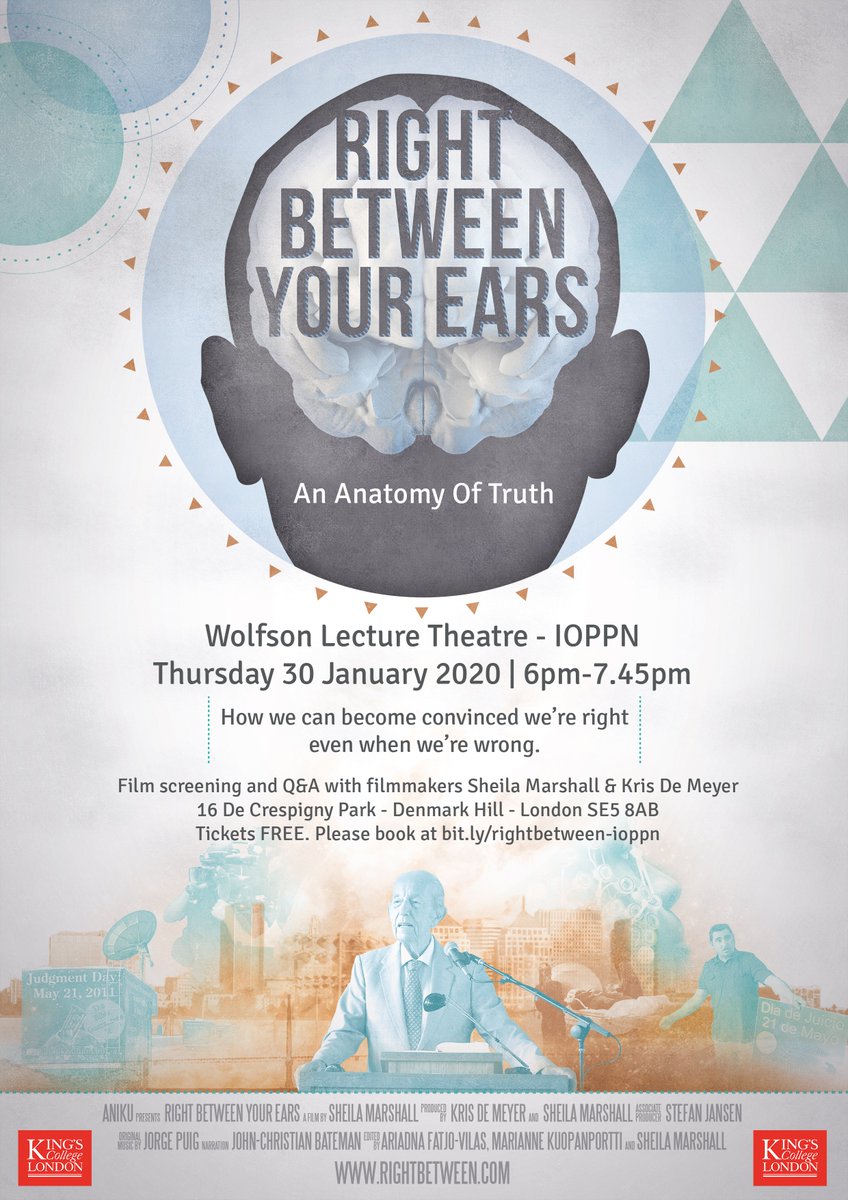 @KingsIoPPN today don't miss this chance to see this fantastic & fascinating documentary on the Neuroscience of Belief Wolfson lecture theatre this evening 6-7.45pm Followed by Q&A with its makers@kris8dm &@sheshemarshttps://twitter.com/KingsIoPPN/status/1217026897764405248 …