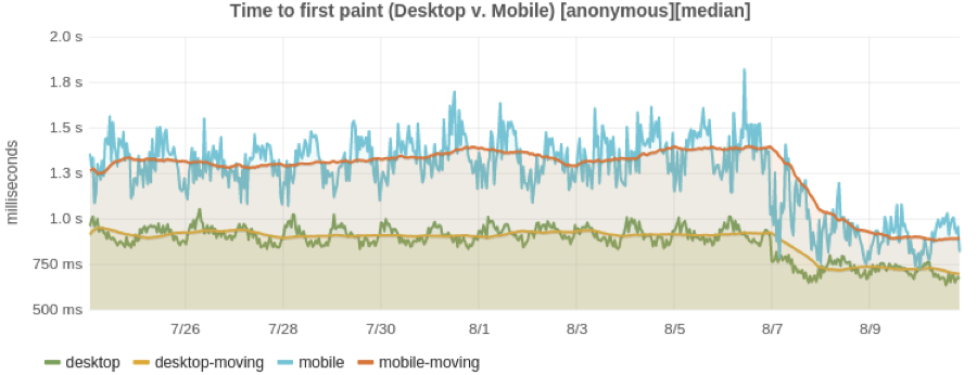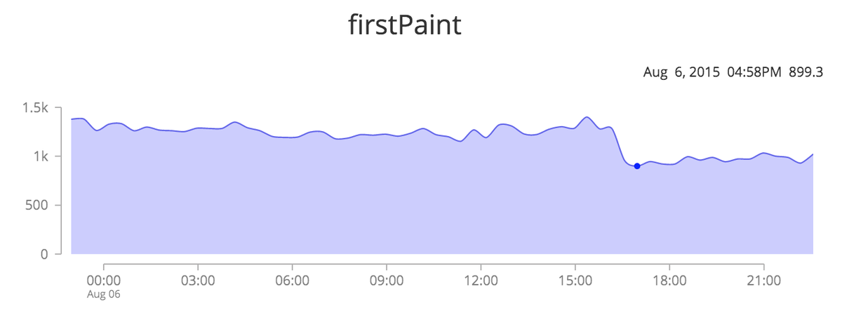 Median firstPaint for Wikipedia (mobile & desktop). See https://performance.wikimedia.org/#!/week and https://grafana.wikimedia.org/#/dashboard/db/performance-metrics …