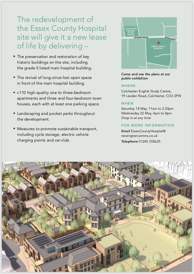 @Cllr_J_Young . Next consultation event is Weds 22nd 4pm-8pm at Colchester English Study Centre, Lexden Road (opposite the site).pic.twitter.com/vaio8hZyKp