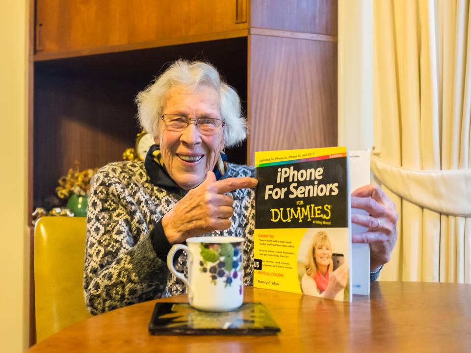 Gma got an iPad for her 90th birthday, and upgraded to one with a camera when she was 93.5! She also bought herself an iPhone, but never mastered it despite the "iPhone for dummies" book she bought from the library...pic.twitter.com/HxCAxE5doz