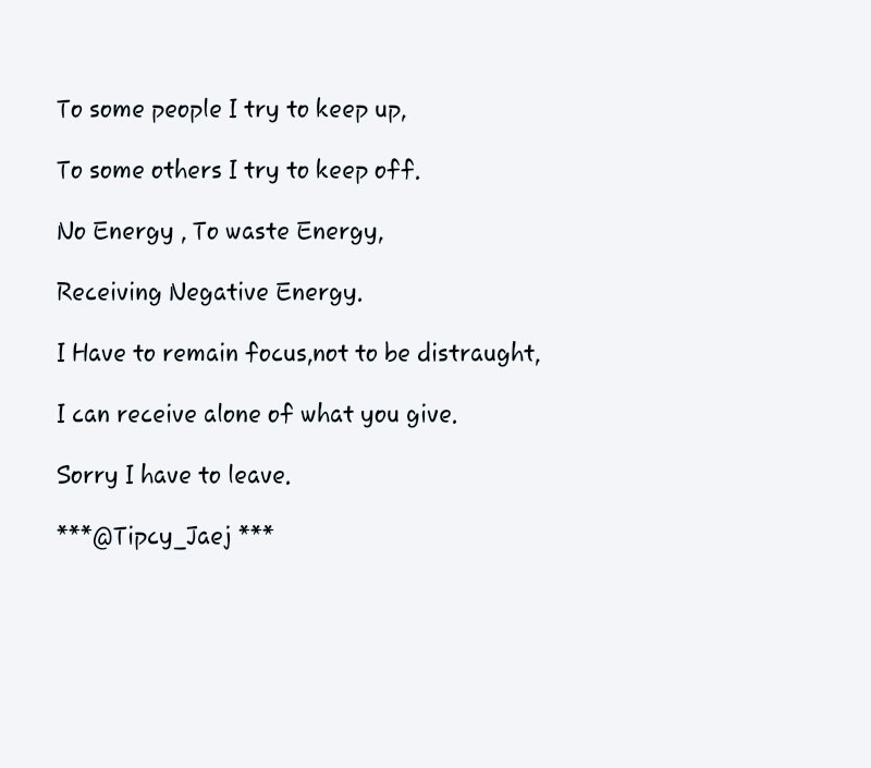 To some people I try to keep up, To some others I try to keep off. No Energy to waste energy receiving negative energy.