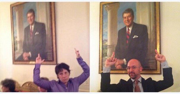 Imagine, if you will, if friends of Obama's had done that in front of a portrait of Nancy Reagan.Half of America would be dead.