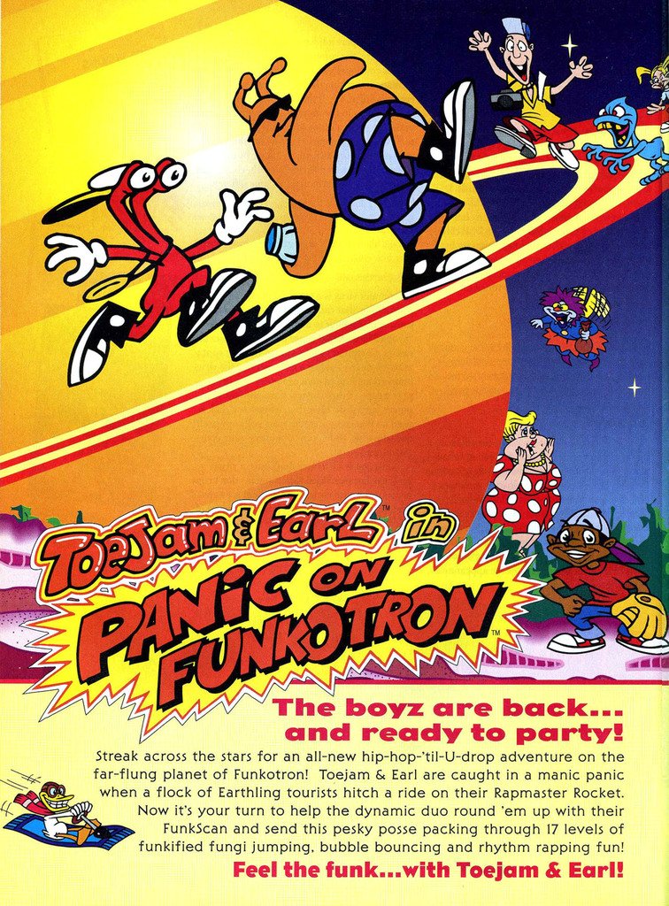 The print ad for ‘Toe Jam & Earl: Panic on Funkotron’ for the Sega Genesis.