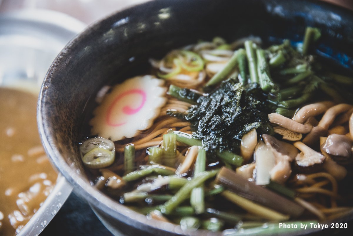 Delicious warm soba noodles with soup and vegetables!