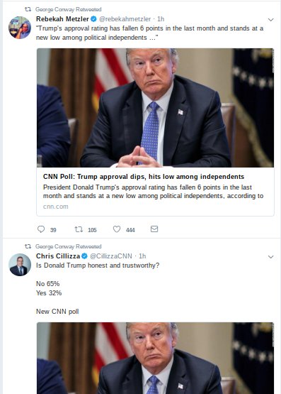 Kellyanne Conway's husband George is retweeting all of the new poll numbers showing Trump's approval plummeting.pic.twitter.com/1VUBc96G6P
