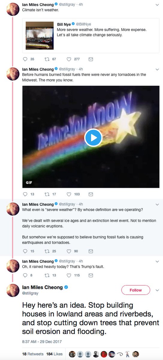 He is partially right, those are dumb places to build houses and natural flood defences are way more efficient than artificial ones pound for pound. It’s just tragic that he’s also so fucking wrong about everything else ever that this doesn’t matter.