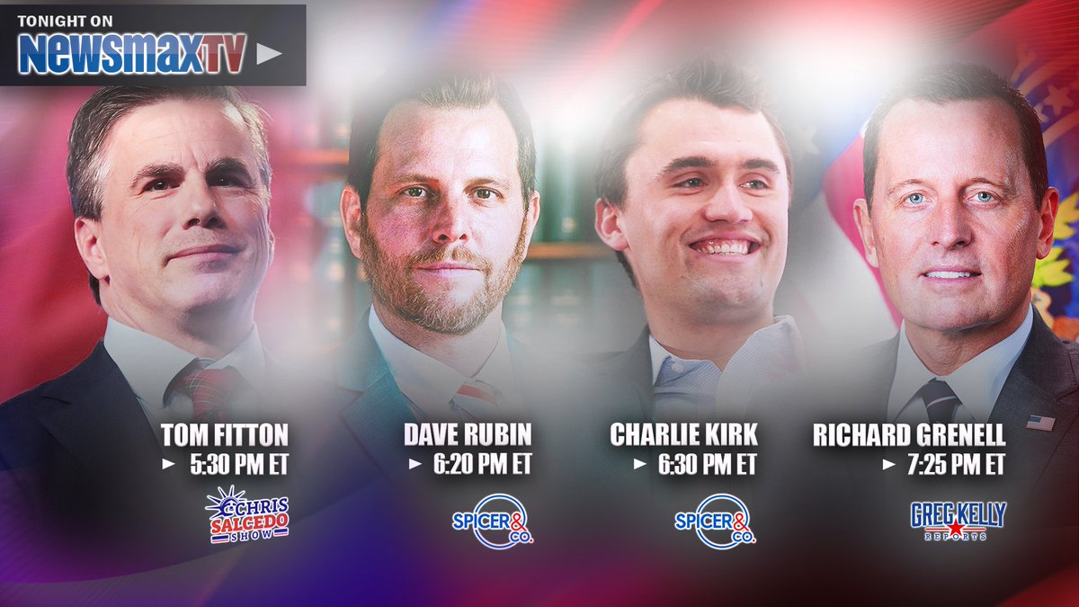 • @TomFitton joins The Chris Salcedo Show at 5:30PM ET •@RubinReport and@charliekirk11 join@seanspicer at 6:00 •@RichardGrenell joins@gregkellyusa at 7:25 WATCH LIVE on Newsmax TV: http://nws.mx/tv pic.twitter.com/rkubih26VW