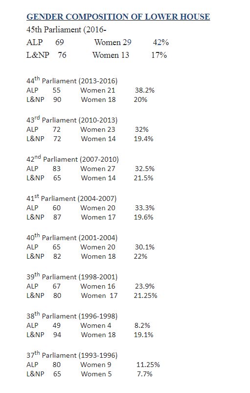 Bernard Keane in Crikey points out the Coalition has 13 female MPs in the lower house, fewer than the 17 in John Howard’s first term (1996-98). In the same period, Labor has gone from four female MPs to 27. #auspol