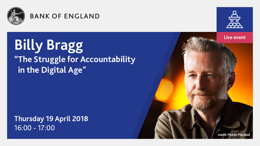 @billybragg will be joining us for a#onebankflagship event on 19 April, delivering his talk 'The Struggle for Accountability in the Digital Age' followed by a Q&A. Find out more and apply for free tickets. https://b-o-e.uk/2H8AvI6 pic.twitter.com/LLd0AP6GQS