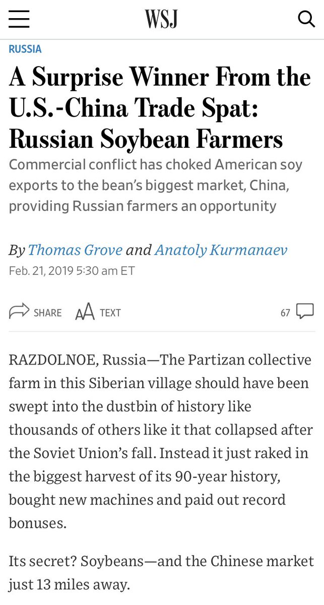 Trump’s trade war with China benefitted farmers in Russia, though.
