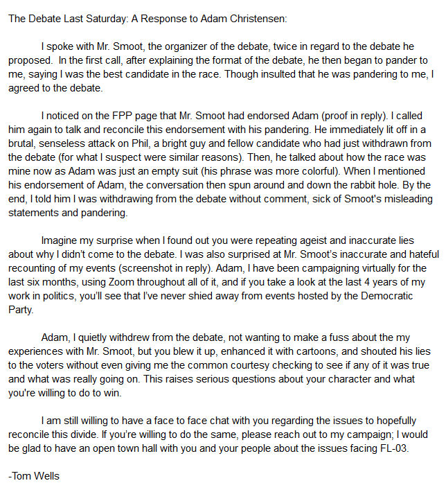 Proof of Adam's endorsement: https://fpphelps.com/florida-district-3/ …. Screenshot of Mr. Smoot's rant enclosed.pic.twitter.com/sAEhUnXTum