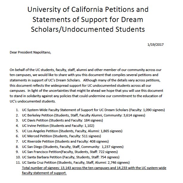 Over 14,000 signatures, including 1,090 UC faculty signees, supporting #undocumented studentspic.twitter.com/96672VGs80