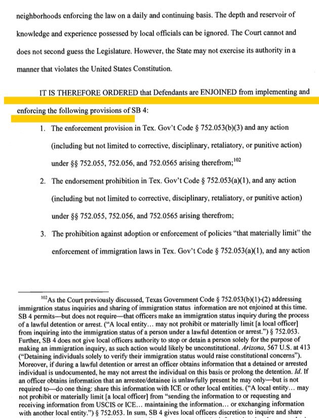 BREAKING: much of #SB4 enjoinedpic.twitter.com/9oR6ckrBEE