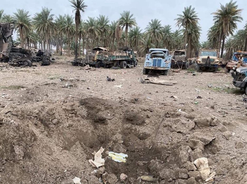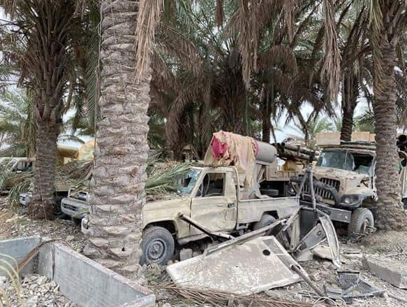 Going back to the retalition Some new photos from the airstrikes showing dozens of vehicles damaged near Jurf Nasr / Sakhr. Pretty sure this site is south of the town itself. pic.twitter.com/t3rTObLfmv