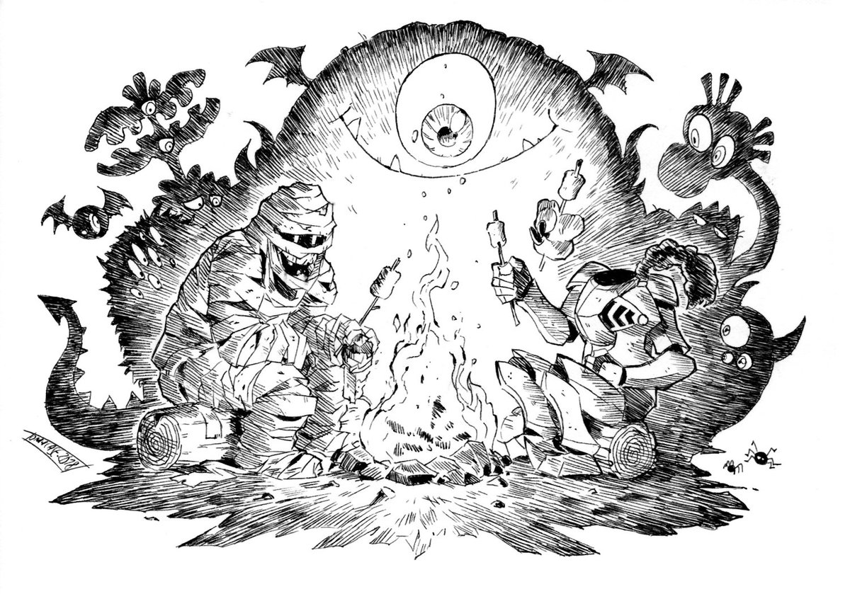 🎃"Seven Days of SpookInk Arts"🎃 👻Day 5 ~ Monster Campfire ~ 👻 Tool used : Ink pen #Halloween #Halloween2018pic.twitter.com/CdzNLTsofK
