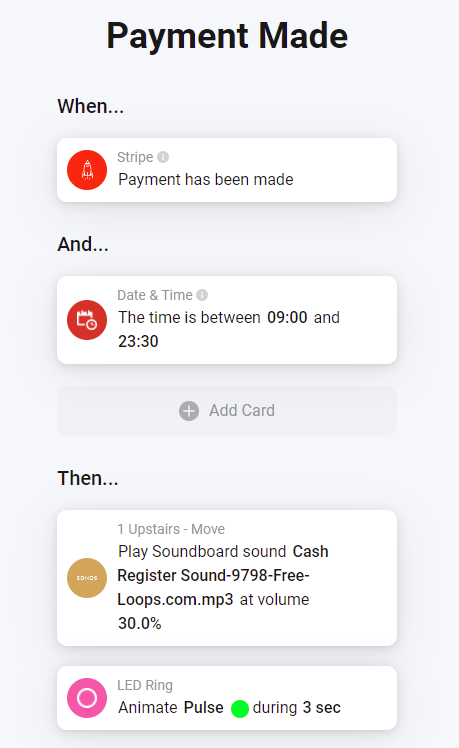 I've just created an "invoice paid" webhook from Stripe to a custom app on my Homey (smart home) which then has my Sonos speakers make a cha-ching sound. Now to real business stuff that will make it work hard