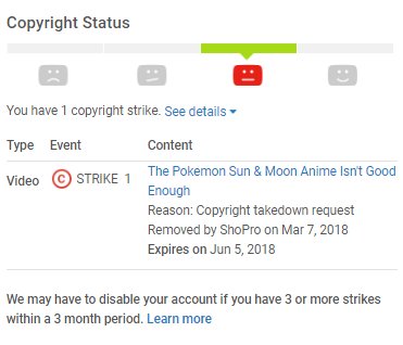 So, despite: -I'm talking thru the entire thing w/ my own opinions -I use screenshots literally every other Poketuber/Gaming Youtuber uses -it's a 9 month old video This is somehow ShoPro's original content and I get my first strike? What the fuck?????? @TeamYouTube @YouTubepic.twitter.com/oAdhprmy0M