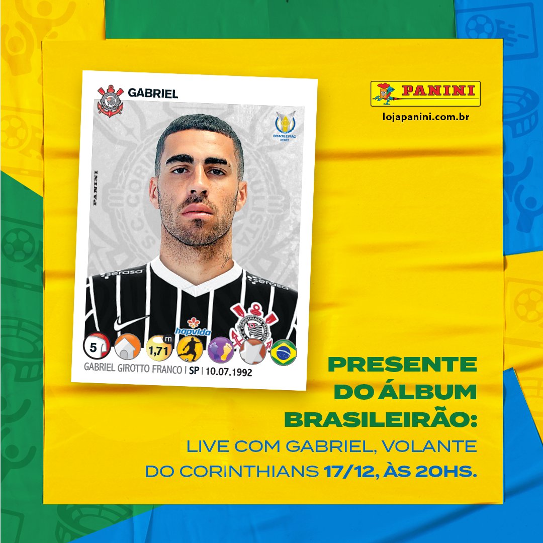 E a promoção do álbum do brasileirão 2020 não para de distribuir prêmios! Hoje LIVE com o Gabriel do Corinthians, o sortudo poderá conversar com seu ídolo e perguntar qualquer coisa, mas fica tranquilo que você vai poder assistir de camarote, lá pelo Facebook da Torcida Panini!pic.twitter.com/Mb45wVapto
