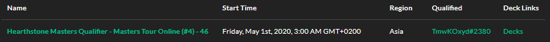 Qualifié pour le Masters Tours Asia#2 (Online) With DH Aggro / War Egg / Rogue Questing + Galak ! Prochain Event le Masters Suède (Online) en Juin ! decklist code : https://www.yaytears.com/battlefy/5e72a957fc7c8002280e79a4/TmwKOxyd%232380 …pic.twitter.com/wCN3aoOPWK